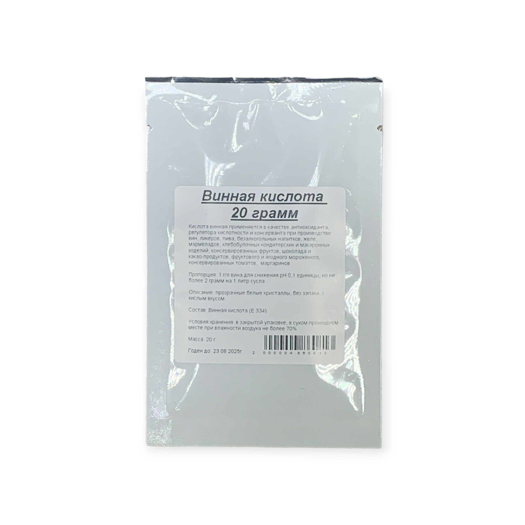 В домашнем виноделии главное – это ингредиенты, а также соблюдение технологии приготовления вина. Вот почему Винная кислота, 20 гр является необходимым атрибутом винокура. Покупателям нашего интернет-магазина мы сделали цену всего 30 рублей. И выгодную доставку до адреса Московская обл., Лыткарино г., ул. Первомайская, 2 в Лыткарино.